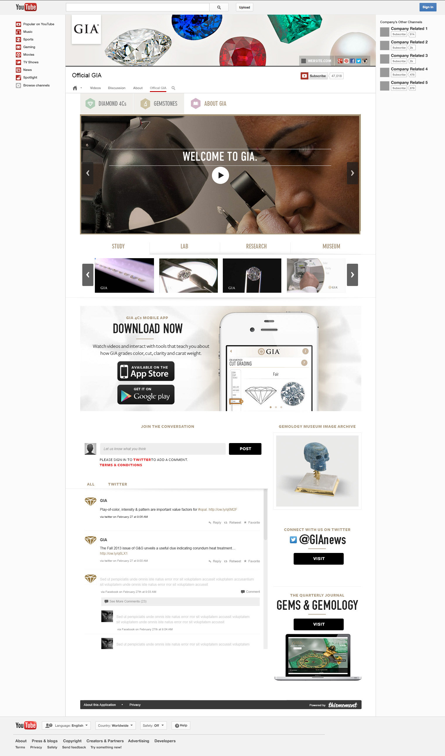 Custom YouTube channel for GIA with The Shand Group.